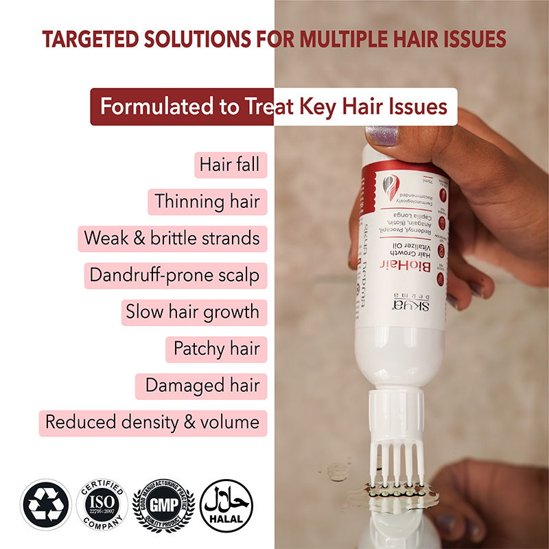 - BioHair Hair Growth Vitalizer Oil is recommended for safe and effective use by dermatologists.