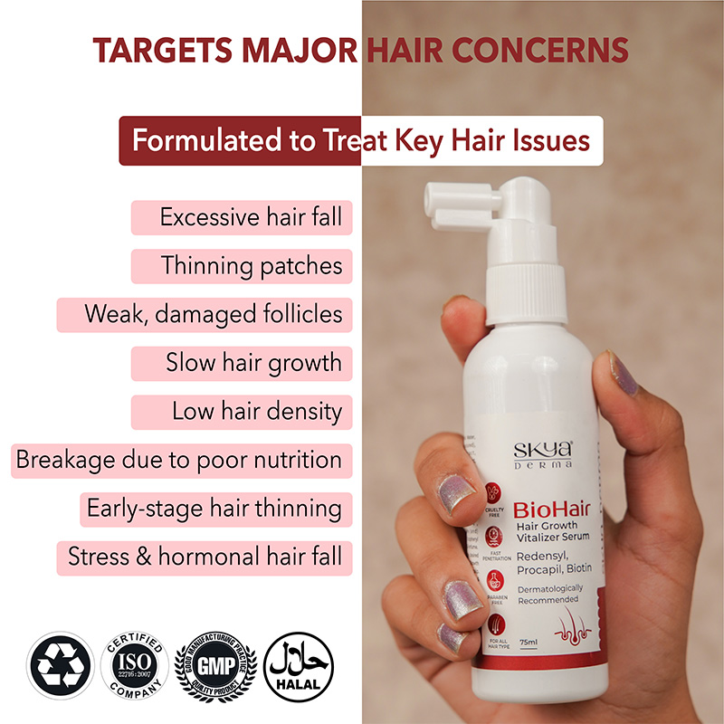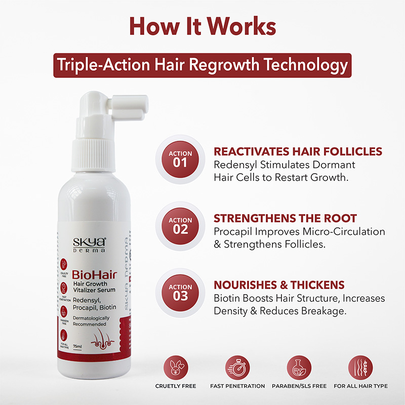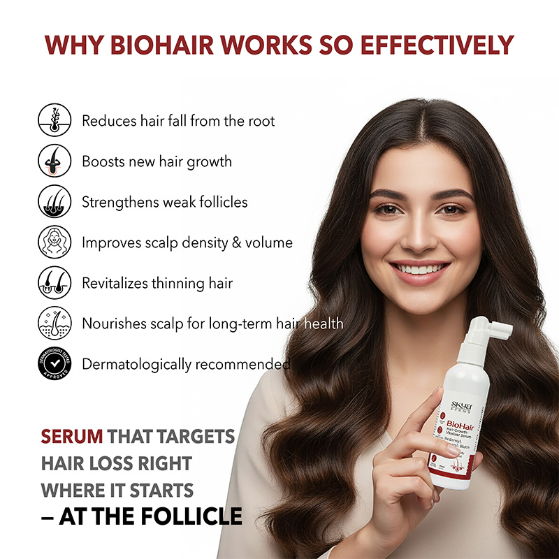 BioHair- Hair Growth Vitalizer Serum is the specialized serum that targets the cells from the dermal papilla to actively promote your hair growth and reduce hair loss.