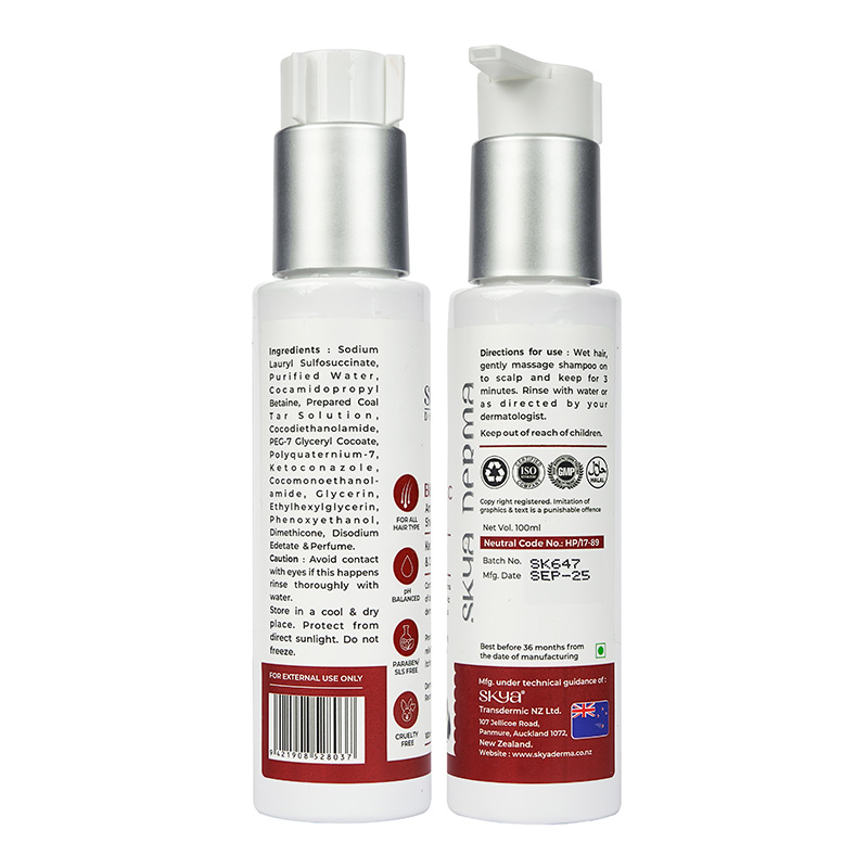 This anti-dandruff shampoo from Skya Derma is fromulated with ketozonazole and coal tar which are helpful in controlling stubborn dandruff, reducing scalp inflammation, and ideal for those who are dealing with dandruff, seborrheic dermatitis, and scalp psoriasis. This anti-dandruff shampoo is helpful to soothing irritation while supporting a healthier scalp.