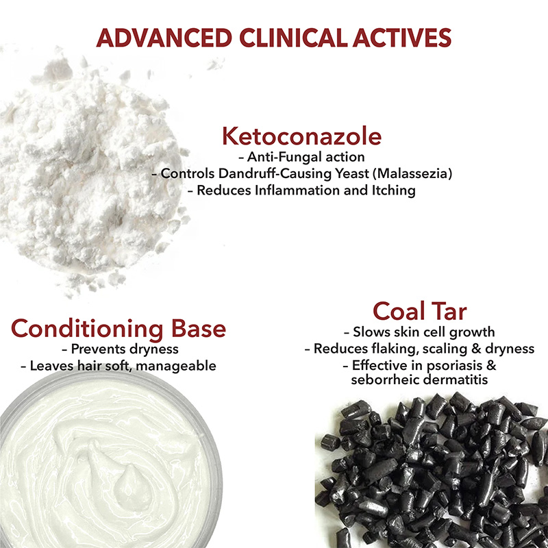 You need to wet your hair thoroughly, then apply the shampoo to the scalp. Massage gently on your scalp for even coverage, allowing the ingredients, ketoconazole and coal tar, to work. These active ingredients, ketoconazole and coal tar can reduce dandruff, itching, and inflammation.
