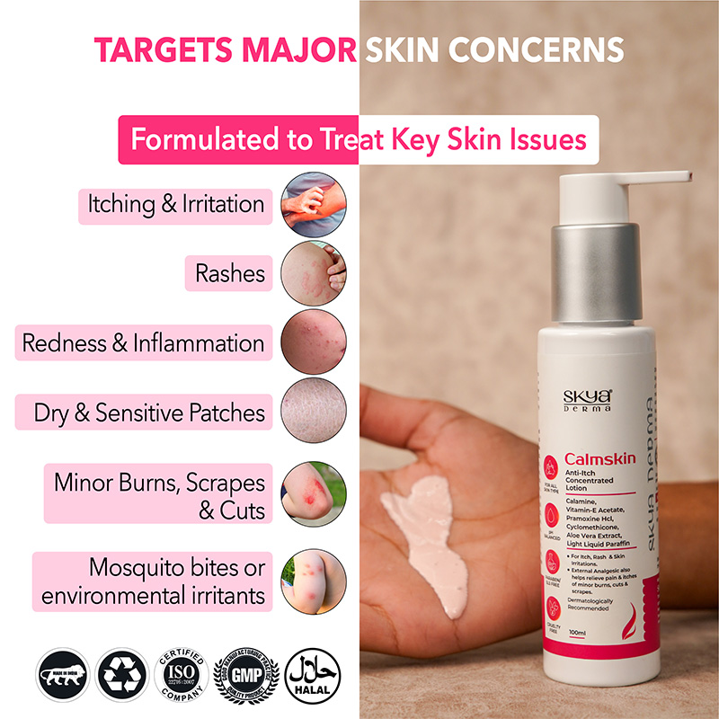 Calmskin Anti-Itch Concentrated lotion is a soothing and fast-acting lotion which is designed to relieve itch, rash and minor skin irritations. Skya Derma brings this lotion to help calm and nourish the skin.