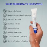 NuDerma-TX Transformation Face Cream is a powerful daily treatment cream that can target pigmentation, dullness, and uneven skin tone while supporting overall skin radiance. This face cream is enriched with tranexamic acid, ethyl ascorbic acid, Melanostatine⢠5 PS, Beta White, tyrostat, mandelic acid and salicylic acid that can help reduce visible pigmentation and support even skin tone.Ā