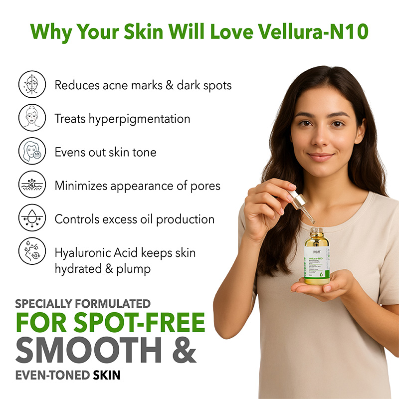 Vellura-N10 -Niacinamide 10%, Hyaluronic Acid 1% Serum